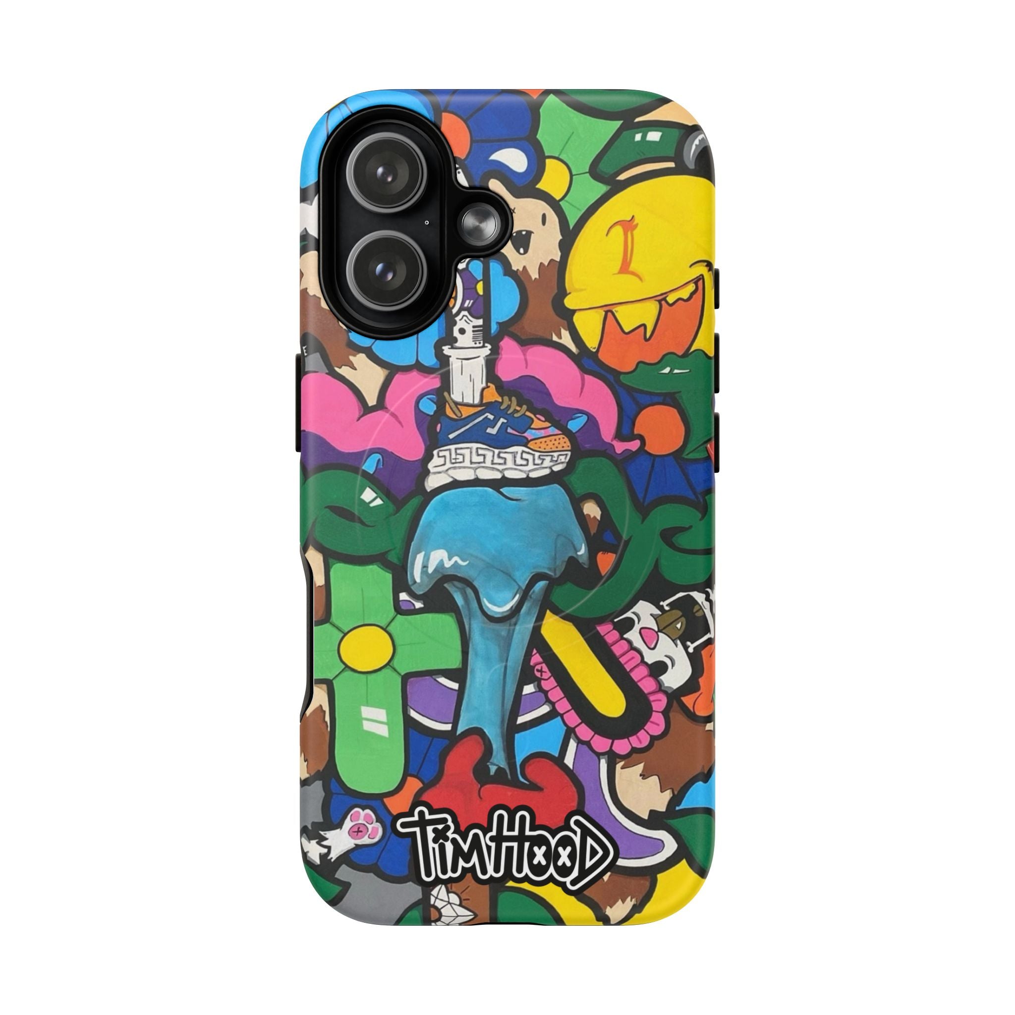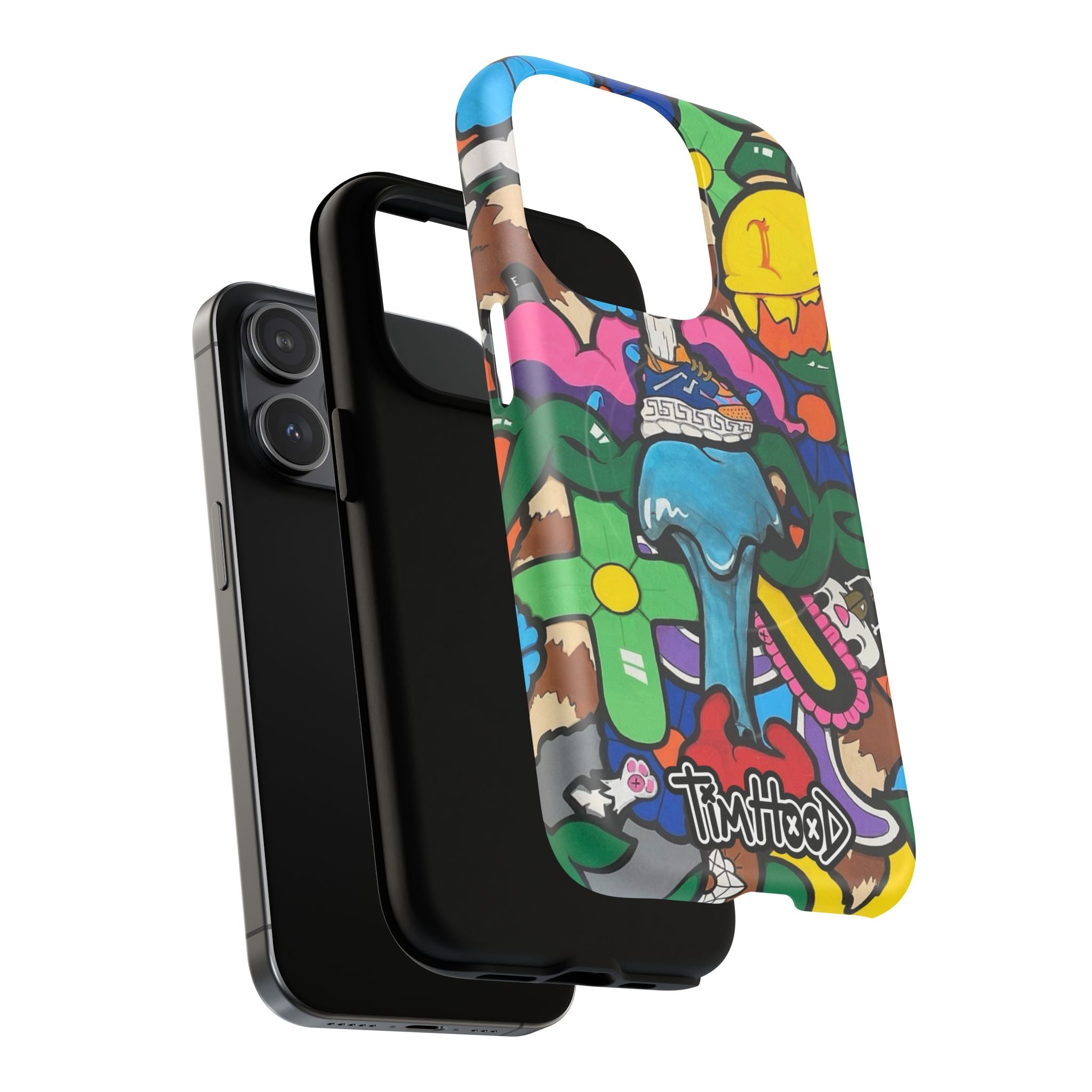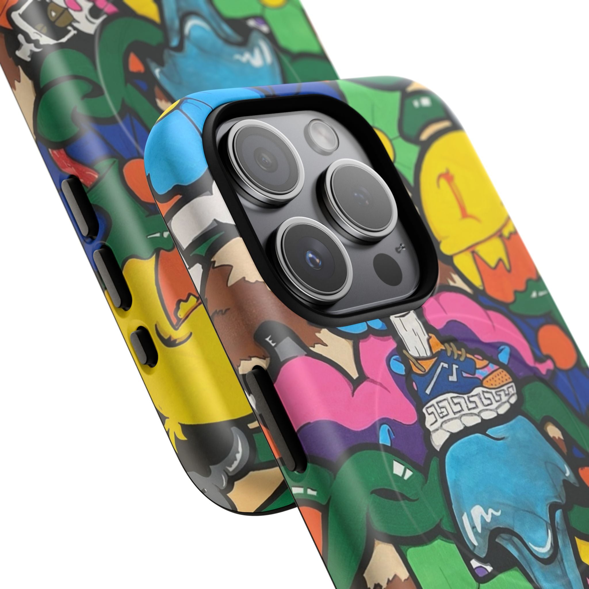 This slim, double-layer magnetic phone case combines streetwise attitude with everyday protection. A vibrant, graffiti-inspired wrap bursts across the glossy or matte shell, bringing color and character to your iPhone while a TPU silicone liner cushions drops and absorbs shocks. The MagSafe-compatible magnetic module keeps wireless charging and accessories aligned, and precise cutouts maintain full access to ports and buttons. Built from impact-resistant polycarbonate and TPU, it’s built to take daily wear without dulling the artwork—great for city commuters and creative types who want their phone to stand out while staying protected.